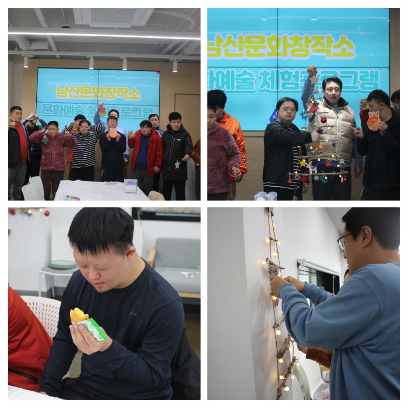 크리스마스 벽트리 장식을 모두 끝낸 후에는 준비해주신 간식을 맛있게 먹으려 활동을 마무리 하였습니다.