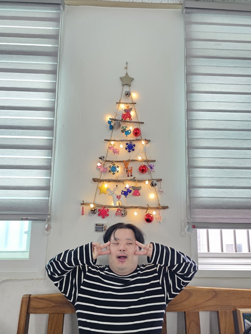 센터로 귀원 해 벽트리를 걸어 인증샷도 찰칵!! 여기에 전등을 켜니 정말 크리스마스가 온 것 같은 분위기를 느낄 수 있지 않나요?